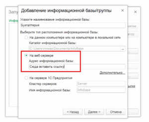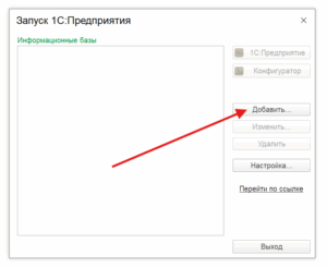 Выберите «Добавление в список существующей информационной базы» и нажмите «Далее».
